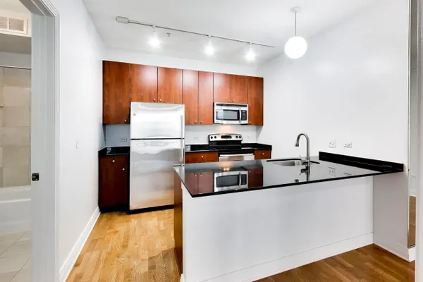 Rarely available and move-in ready at the amazing Quincy in the West Loop! Spacious oversized 1 bed / 1 bath featuring a large bedroom with brand new carpet, hardwood floors in the main living area and kitchen, fresh paint updates and touch-ups, and a new light fixture/fan in the living room. This bright and inviting home also offers an in-unit washer/dryer, private balcony with city views, custom window treatments, ample closet space throughout, and a marble bath with dual vanity and tub/shower combination. Kitchen features stainless steel appliances, maple cabinetry, and excellent storage. The Quincy is a full-amenity, pet-friendly building with 24/7 door staff, on-site management, maintenance, bike room, storage, service elevator, and an incredible recently updated 11,000 sq ft club and recreation level featuring a fitness center, party room, game room, bowling alley, private theater, billiards, ping pong, foosball, darts, and more. Enjoy the expansive 8th-floor sundeck, conveniently located on the same level as the unit, beautifully designed with outdoor lounge furniture, grilling stations, mature trees, landscaped green space, turf grass areas, and multiple seating areas, an ideal extension of your living space for relaxing, entertaining, or enjoying the outdoors. Unbeatable location with easy access to the Loop, West Loop, I-90/94, I-290, Union Station, Mariano's, Whole Foods, restaurants, and public transportation, and located near restaurants, coffee shops, and shopping. Heated garage parking included!